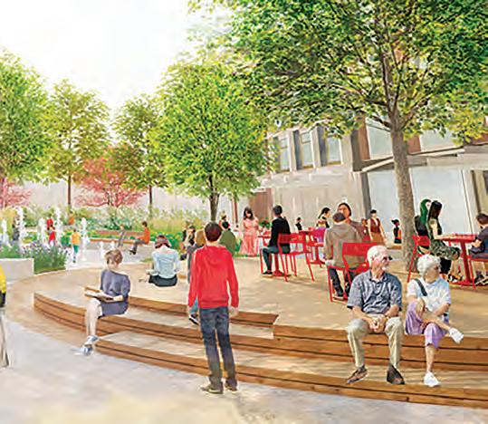 The design emphasizes fun and whimsical curves, inspired by the original Honest Ed’s sign, and also features a birdand insect-friendly environment. Native plants will help support pollinators and contrib-