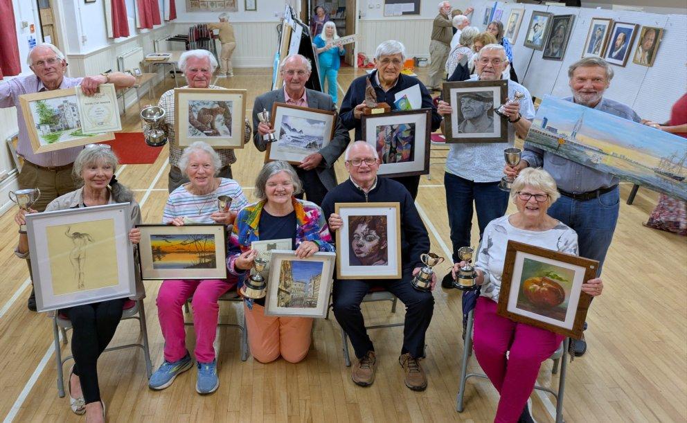 the standard of entries for the silver cup event was high and the winners of the different categories proudly displayed their trophies and paintings. members enjoyed viewing the paintings, voting for their favourites and consuming the food and a glass or two of wine we were grateful for a hard working group, led by martin gebbett, who prepared the hall and hung paintings, and to everybody who helped clear up afterwards.