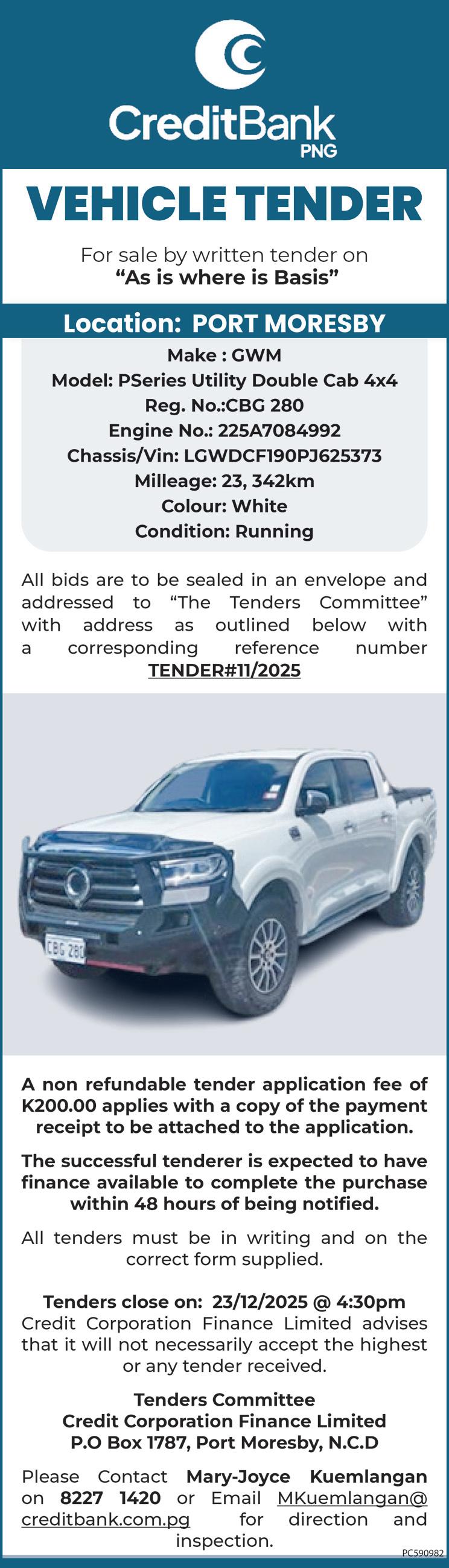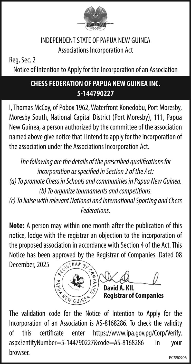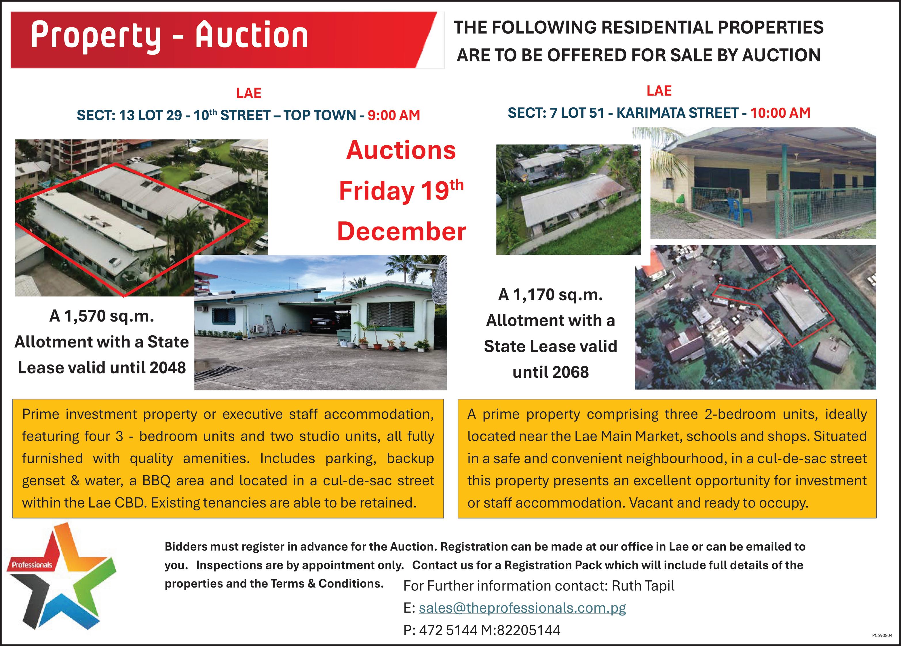 Advertising accepted for publication in the Post-Courier and any associated Publications is subjected to the conditions set out in the rate card and rules applicable laid down from time to time by the Publisher. Every advertisement is subject to the Publisher’s approval and the Publisher may, at its discretion, refuse to accept an advertisement for publication if it believes that the advertisements may infringe the rights of any person or may not comply with all laws and regulations of the Country. The Publisher accepts no responsibility or liability in relation to any loss due to the failure of an advertisement to appear according to instructions.