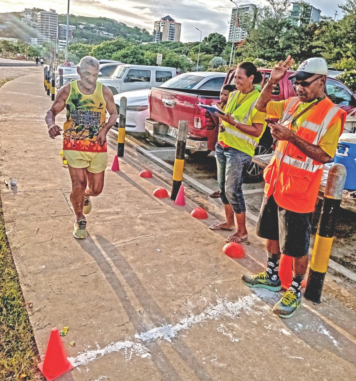 have run for 10 km, he followed an irregular route and his time of 58.08 was recorded as 5.4-km finish. The short race of 3 km, which went to the Big Fish at Koki and back, was dominated by youngsters including last week’s winner, Joshua John, who won again in 12.54.