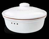 Delicious, healthy, economical. Essential nutrients, vitamins and flavours are retained in our meals. With or without added fat, depending on your taste. For storing bread and vegetables, the clay pot guarantees long-lasting freshness.