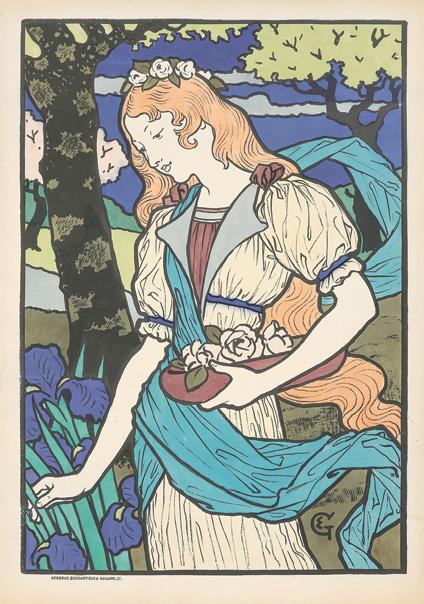 La Libre Esthétique. 1897. “Van Rysselberghe exerted a positive force for the revitalization of the decorative arts at the turn of the century, but his posters are not numerous; those he created for La Libre Esthétique are unquestionably the finest. The elegant feminine figures of his posters, very knowingly placed on the page, seem to be the pretext for van Rysselberghe to balance large spots of red-orange against their greenish or bluish complementaries. The text is beautifully drawn and gracefully integrated into the design of the posters” (Belle Epoque 1970, p. 86).
