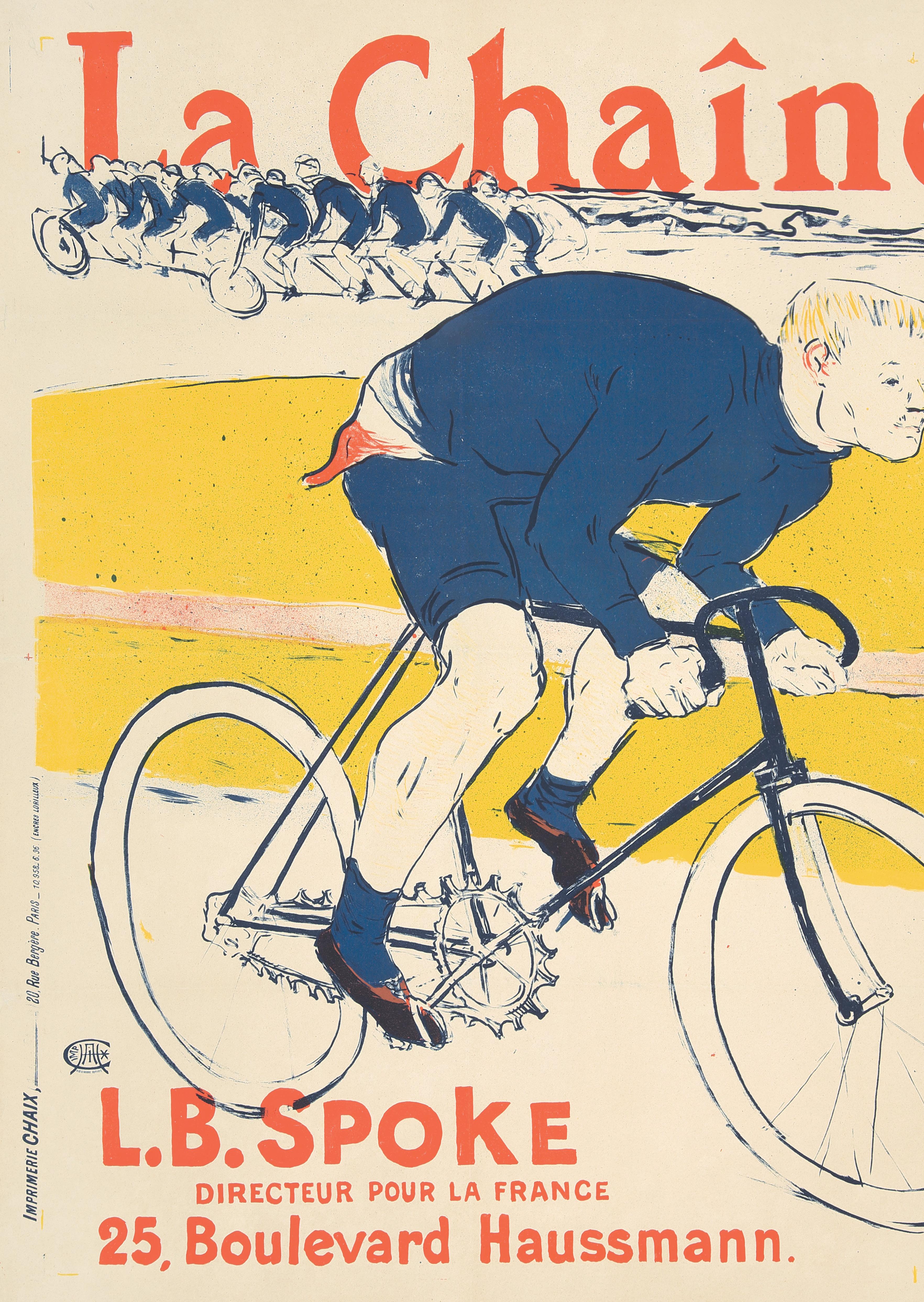 La Chaîne Simpson. 1896. Lautrec captures the riveting energy of cycling in this astute design for the Simpson bicycle chain company. This notable image is available for the first time in nine years.