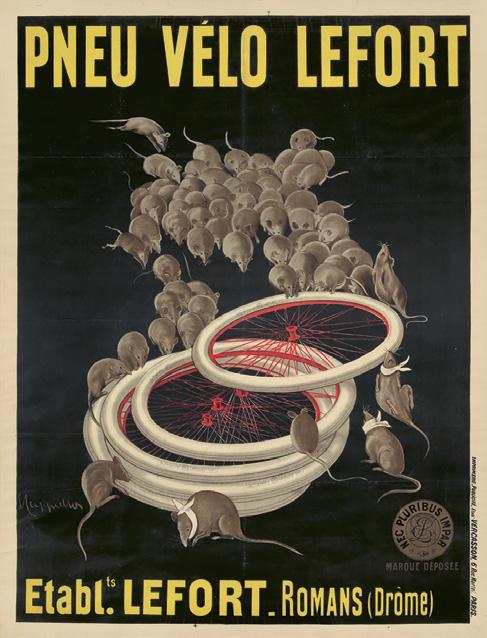 Nearly a century of designs from the earliest models to motorcycles, including Lautrec’s Chaîne Simpson and Cycle Michael, Penfield’s Northampton, numerous delights from Pal, and Nizzoli’s FN. 8 Tour de France posters span 80 years of the race; two images are hand-signed by Greg LeMond.