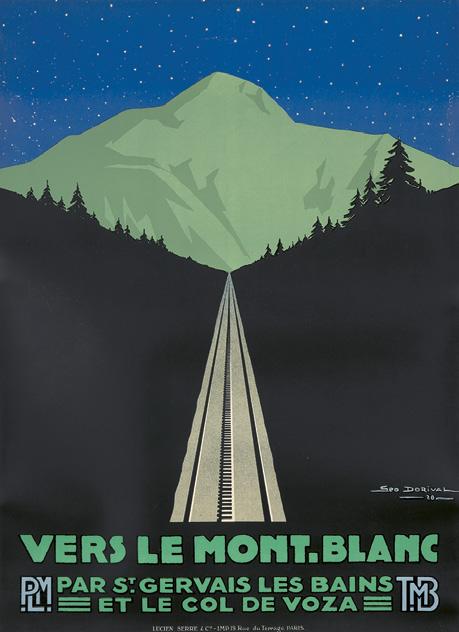 Loupot’s prolific career was marked by two periods: his early Swiss years—1917 to 1924—show him to be a master of the female figure and a sublime colorist, as in his rare Tapis d’Orient, one of his first posters. Upon returning to Paris, he did away with realistic figuration in favor of bold geometric forms influenced by Cubism and Futurism. From 1930-1934 he worked with Cassandre at Alliance Graphique, where he developed his characteristic style: dark backgrounds, airbrushed details, bold typography, and charmingly abstracted subjects. The St. Raphaël, below, is a full-size maquette from the artist’s studio.