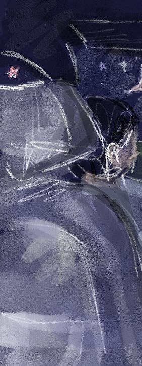 I am perpetually travelling through time, and time is travelling through me. The stars pull at my hair tonight as well, lulling me to sleep. I let my eyes shut. The window feels cold