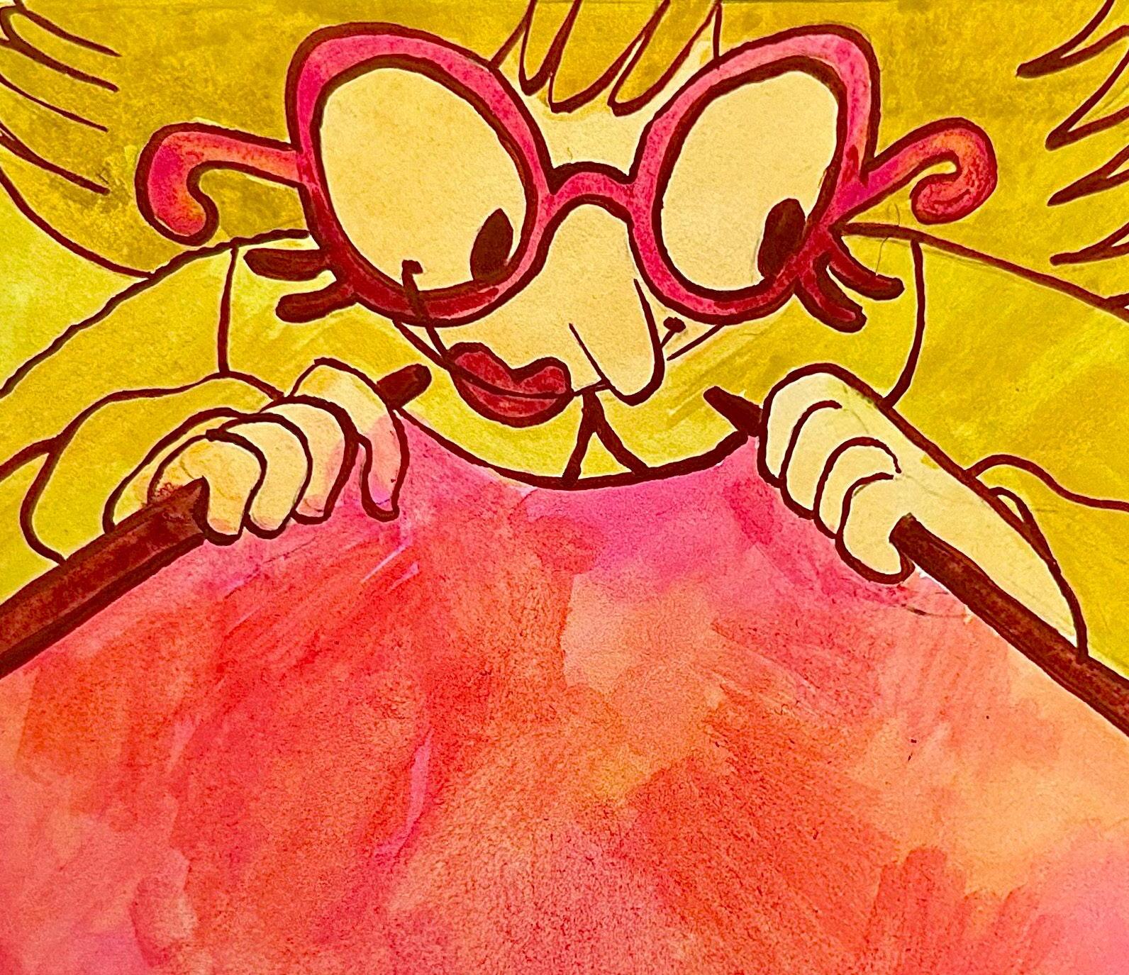 She put the needles back in my hands and patted my work. “Knitters make mistakes all the time,” she said. “If anyone’s looking that closely, they need to get a life!”