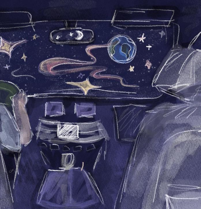I think about that fold in the universe where my high school life lies, tucked away yet still in reach, like that box of sweets you purposefully hide but then use a ladder anyway to indulge yourself (because there is some destructive pleasure in reopening old wounds just to feel them again). The noise of it all echoes in my head, in hallways, in classrooms, in courtyards. When did the world get so loud? When did the world become so suffocating? It was something gradual— a cosmic tide slowly rising and lapping at the shore. The stars fell out of my hair when I ripped the strands out. I think about the universe fading, then expanding, then fading again. I think about escaping, grasping for any