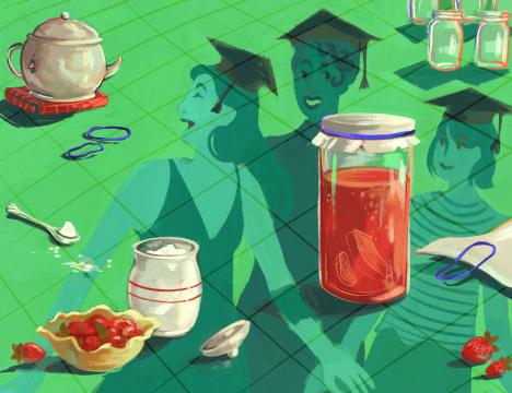 That summer my room became a storage unit for my life away. I configured it—the stuff—in a way that made it easiest to pack everything up and ride back along the coast to Rhode Island. What had been time away became time on. What had been a return home became a departure. Even when I was in my Connecticut house, I didn't spend much time in my Connecticut room. I started to fear what I had been afraid of before: monsters under my bed, skeletons in my closet. I felt smaller. I spent most of my time at the kitchen table, seated between my parents.