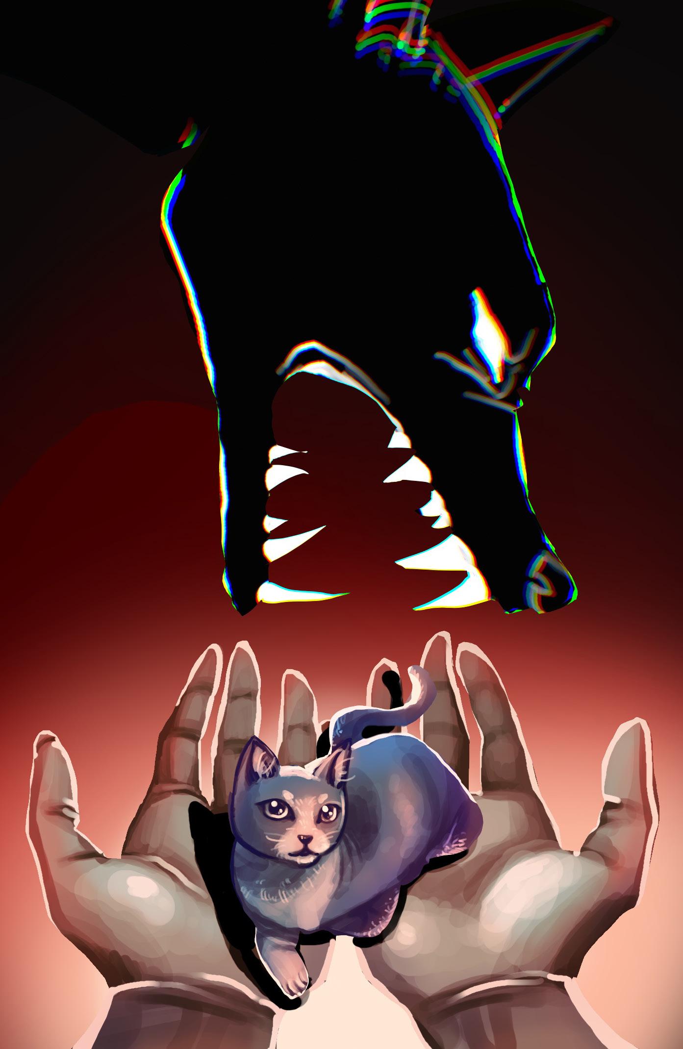 Before I learned to hate, I had a cat named Louis. He was a too-big storm cloud-gray thing. White fur crept up his legs like socks and swept from his belly to the point between his eyes. A divot in his nose made him Jewish like my family and me. I knew he loved me because he would pad into the nest of my legs and curl into sleep for long, soft hours; his purrs vibrated like something from the earth’s core. It was wonderful that he loved me, because when my parents swapped a fifty-dollar bill for a box with a kitten, all the love I’d believed I could harbor came swirling out. I poured it over my cat with strokes and kisses.
