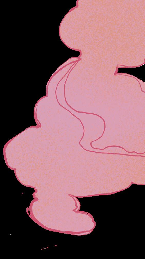 some social damage control—my friends were expecting me, after all. So, I texted the group chat that I’d meet up with them there, turned o my location, and rehearsed my excuse for being late: Oh I just got a migraine! It’s no biggie, really. It must’ve taken an hour for me to regain my composure but I managed to make that trek, getting in line right as the remaining tinges of pink and orange in the sky gave way to darkness.