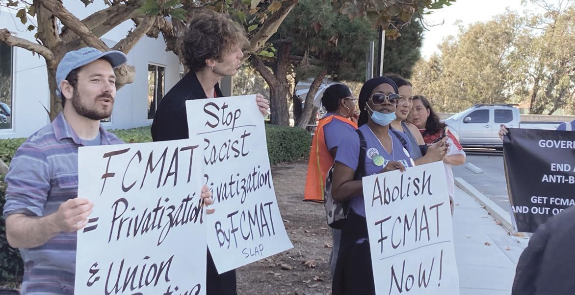 Parent Voices Oakland and other Oakland community groups this week joined with parents and community lead ers from Inglewood in South ern California to demand an end to state-imposed school closings and decades of budget cutbacks at the annual board meeting of the state-financed nonprofit, Fiscal Crisis and Management Assistance Team (FCMAT).Atthemeeting on Wednes day, Sept. 21, held at the Los Angeles County Office of Edu cation in Downey, the com munity coalition demanded “that FCMAT change its racist policy course or, if they refuse, (we) demand that Governor Newsom hold this state agency accountable for their decades of racist public school closures and colonization of Black and Brown communities,” accord ing to a press statement that was released prior to the pro test.The protesters shut down the meeting. They scheduled a