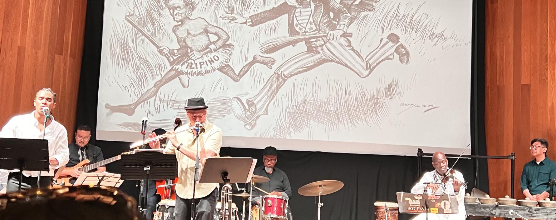 John Calloway, jazz musician and San Francisco State music lecturer, presented his live multi-media experience on Buffalo Soldiers and the Philippine American War to a packed theater.