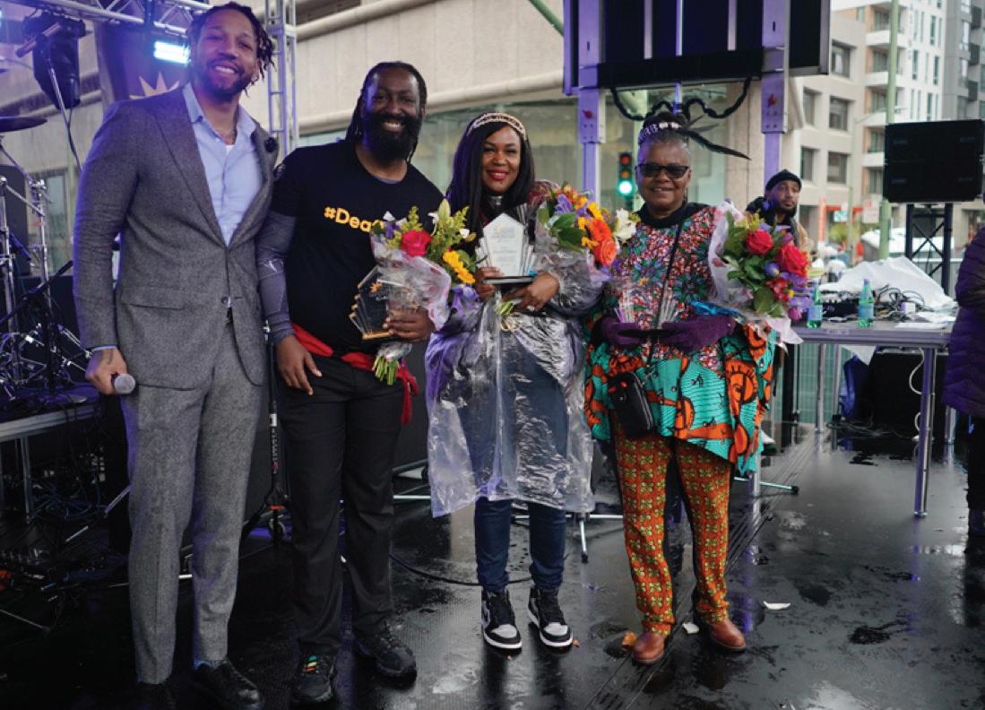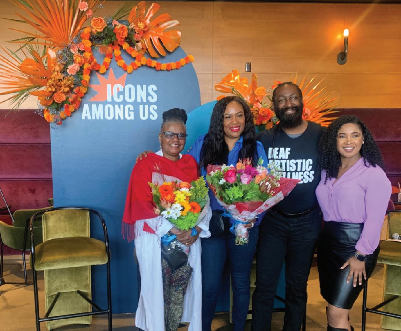 From left, Jacob Mitchell, Vice President of Sales and Marketing for Comcast Xfinity in California, introduces the 2023 “Icons Among Us”: Antoine Hunter, Aminah Robinson, and Angela Wellman. Credit: Don Feria/Comcast
