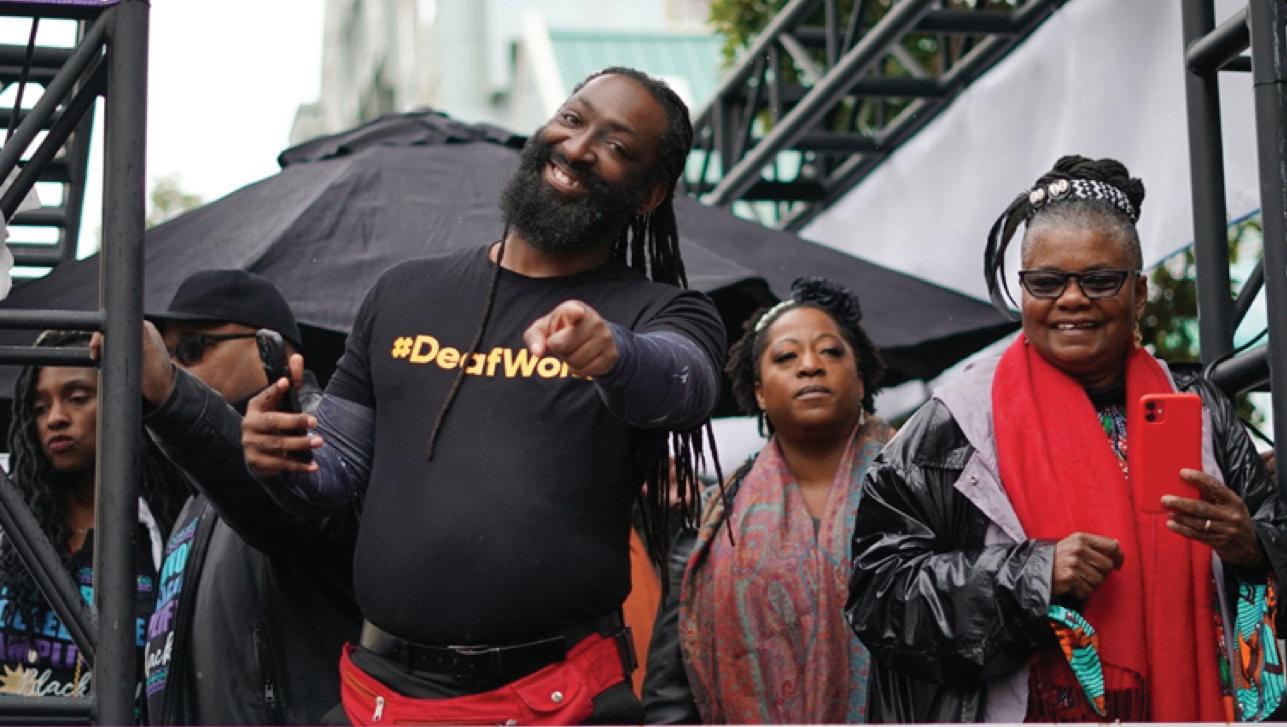 Antoine Hunter (left), choreographer, entrepreneur, and advocate of possibilities, was honored at the 2023 Black Joy Parade in February. Credit: Don Feria/Comcast