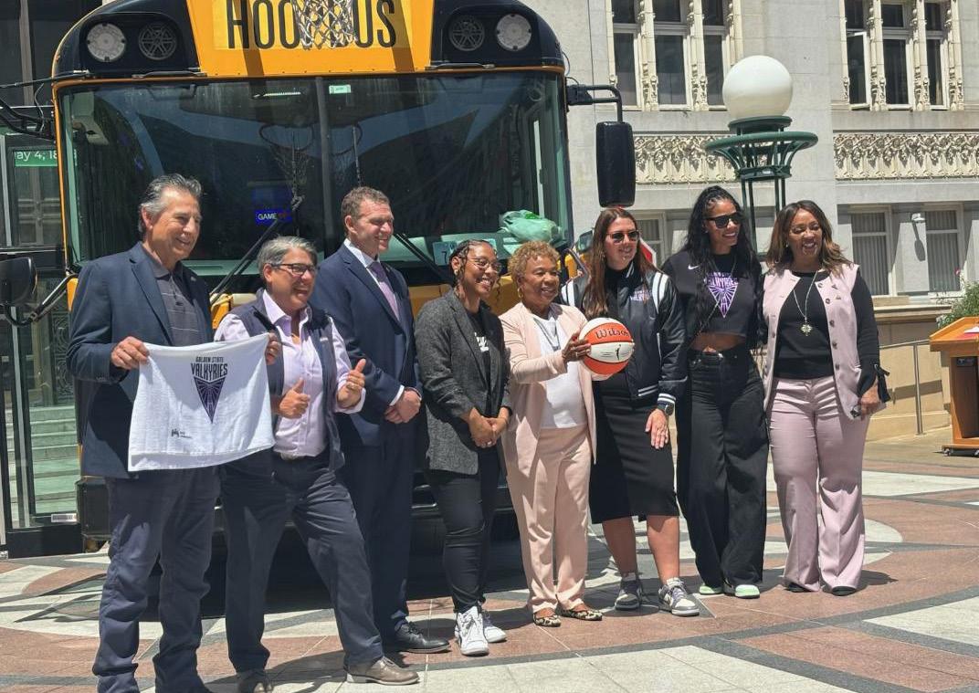 The week featured flag-raising ceremonies at city halls in Oakland and San Francisco, three “Violet Net” installation days at Oakland parks to encourage basketball play, fun “Hoopbus” takeovers at multiple schools presented by Kaiser Permanente, and player appearances.