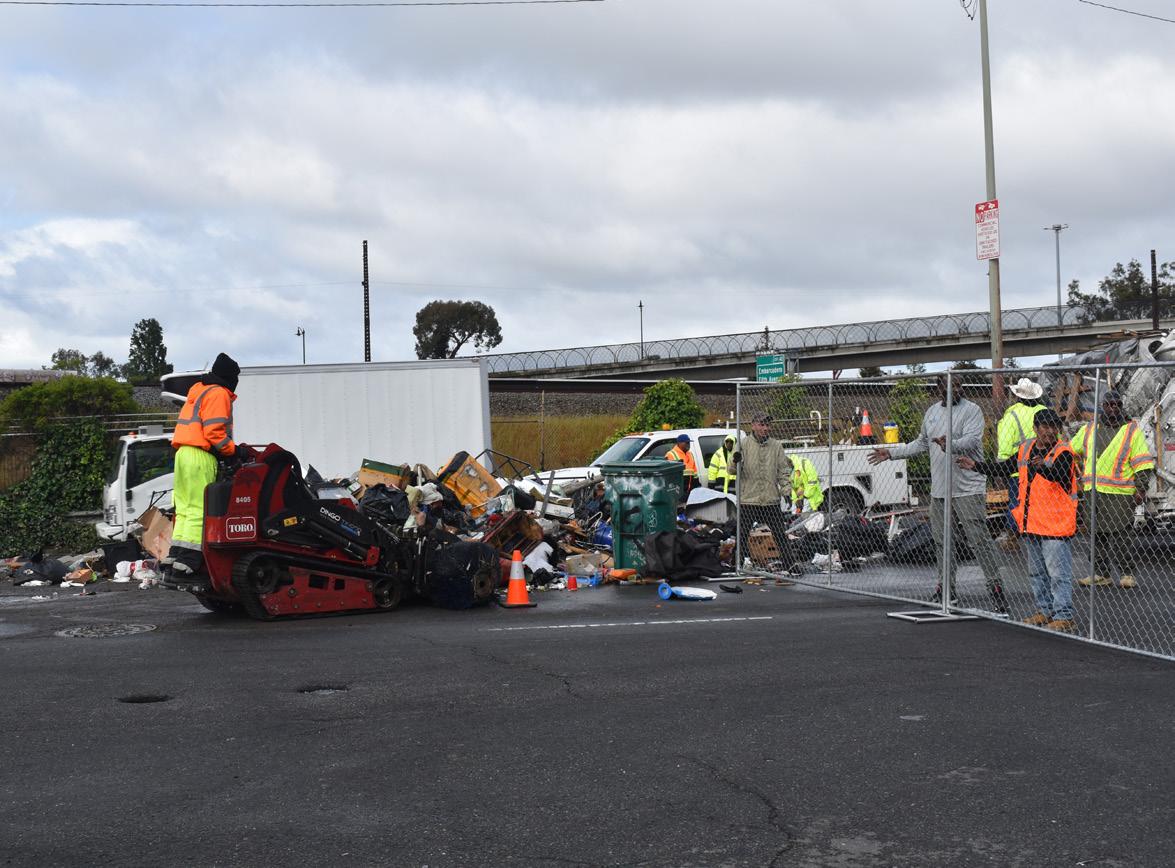 At 8 a.m. sharp, city workers began piling up trash and dismantling makeshift homes along the nearly five-block encampment. City crews blocked off streets from 14th Avenue to 17th Avenue, between E. 12th and International Boulevard, due to the Safe Work Zone Ordinance that was passed by the City Council in 2022 to protect workers from harassment during cleanings, according to a city spokesperson.
