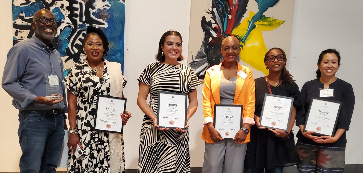 BACC16 THRIVE Award Winner Olton Rensch, founder of Tallio’s with THRIVE Award Nominees: Dupeola Badejo-Olayinka of Èsín Skincare, Antonia Lara Sanchez of Piscola Mami, Nikki Lopez of Caring Haven, Candace Fisher of Agape and Shalom, and Virada Chatikul of Imaginana Stir Fry Stories at the 16th Annual Bay Area Capital Connections (BACC16) Conference at BLOC15 at Jack London Square in Oakland.