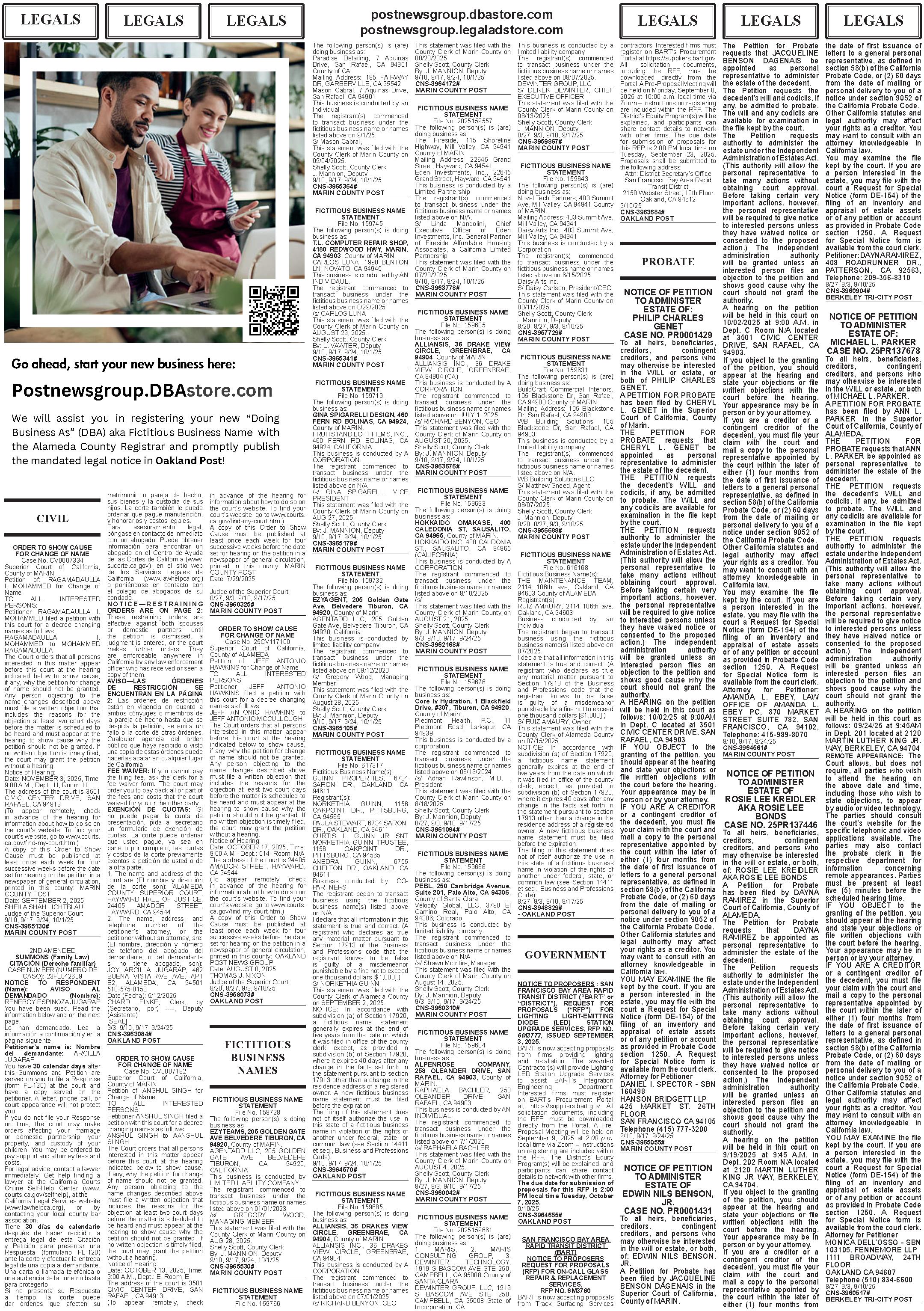 Project Description: The City of Oakland, Department of Finance, is seeking proposals from qualified individuals or firms capable of providing a full range of printing and mailing services.