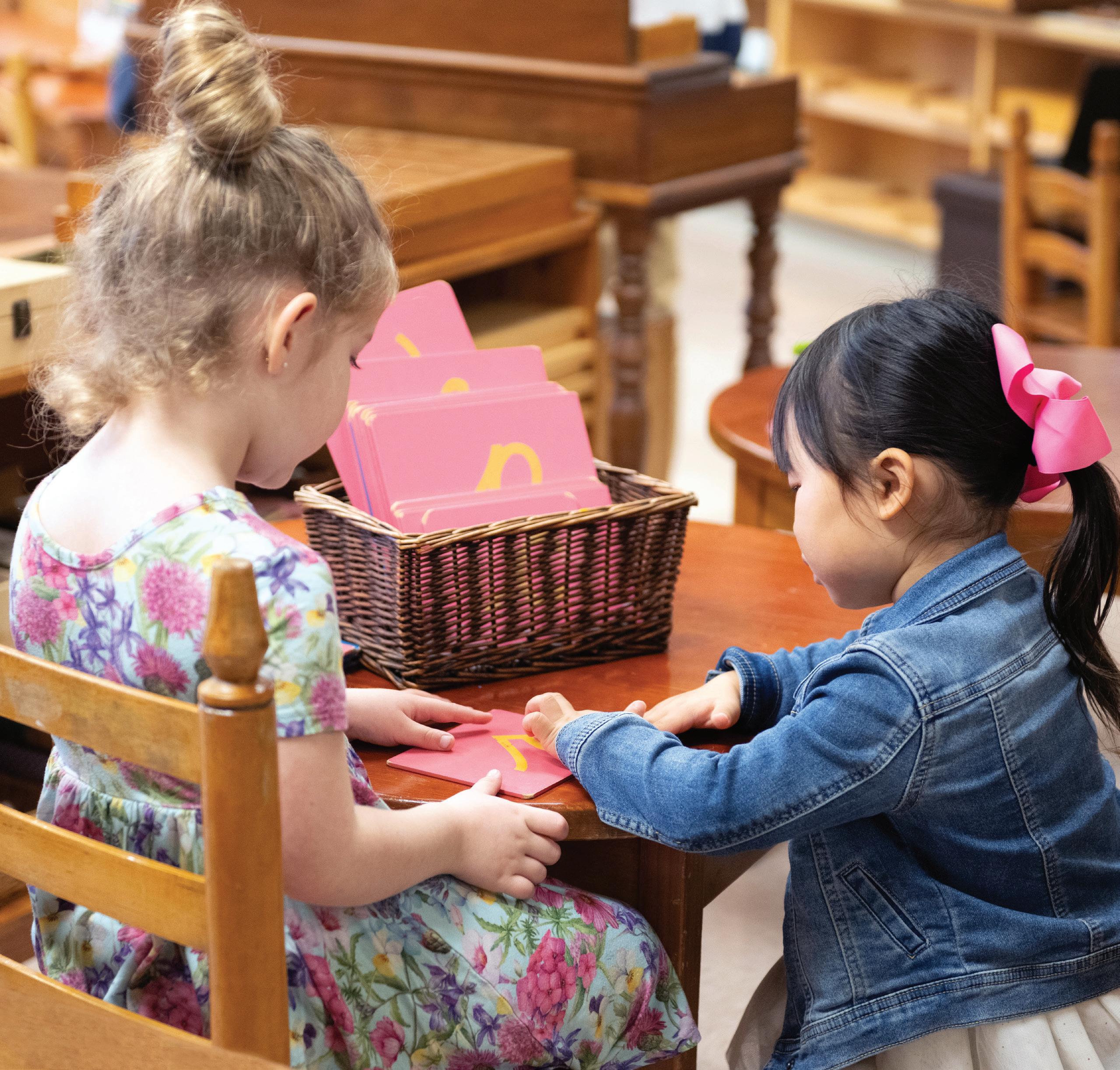 or helping little hands glue pennies onto their class gala art project (pennies that raise thousands at our galas!), Montessori is truly transformational. I have helped eager children purchase armloads of books at Book Fair— suddenly free to simultaneously read and walk to their