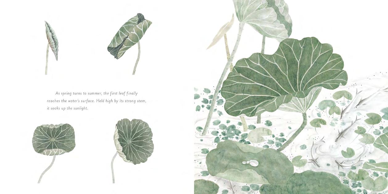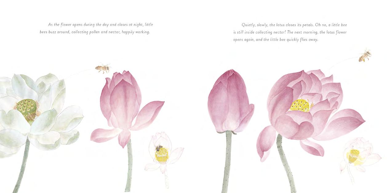 From its beginnings in a peaceful pond, The Water Flower chronicles the journey of a sleepy seed that awakens in spring, pushing through its shell to grow leaves reaching for the sunlight. After blooming into a stunning flower, it begins to fade, revealing new seeds inside a pod, ready to begin the cycle again.