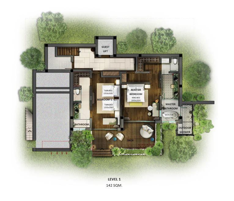 The villa’s design immerses guests in nature’s serene embrace, offering a tranquil retreat with luxurious amenities. Every detail is crafted to seamlessly blend natural surroundings with Peace and comfort. Guests can enjoy their private oasis, featuring curated facilities and ample space for leisure and relaxation.