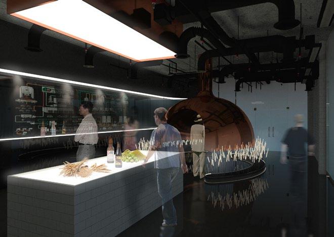 The Brew Lab’s interior immerses visitors in a craft beer journey. Inspired by a brewery’s ambiance, the design creates an authentic atmosphere for exploring the rich history and stories of craft beer.