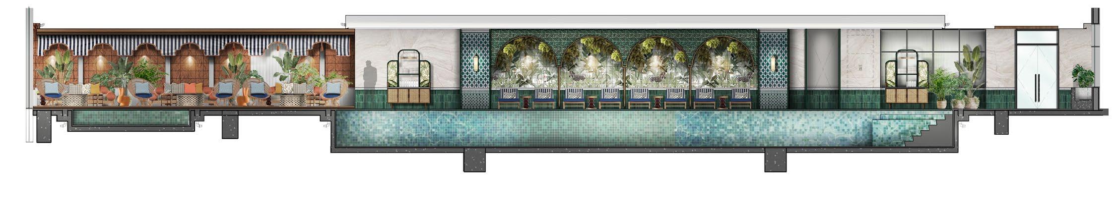 The design of the resort center aims to evoke a sense of luxury as guests step into the hotel’s premier facility. Drawing inspiration from the intricate craftsmanship and rich cultural heritage of Vietnam, the interior space is adorned with handcrafted elements, inviting guests to immerse themselves in a tactile experience.
