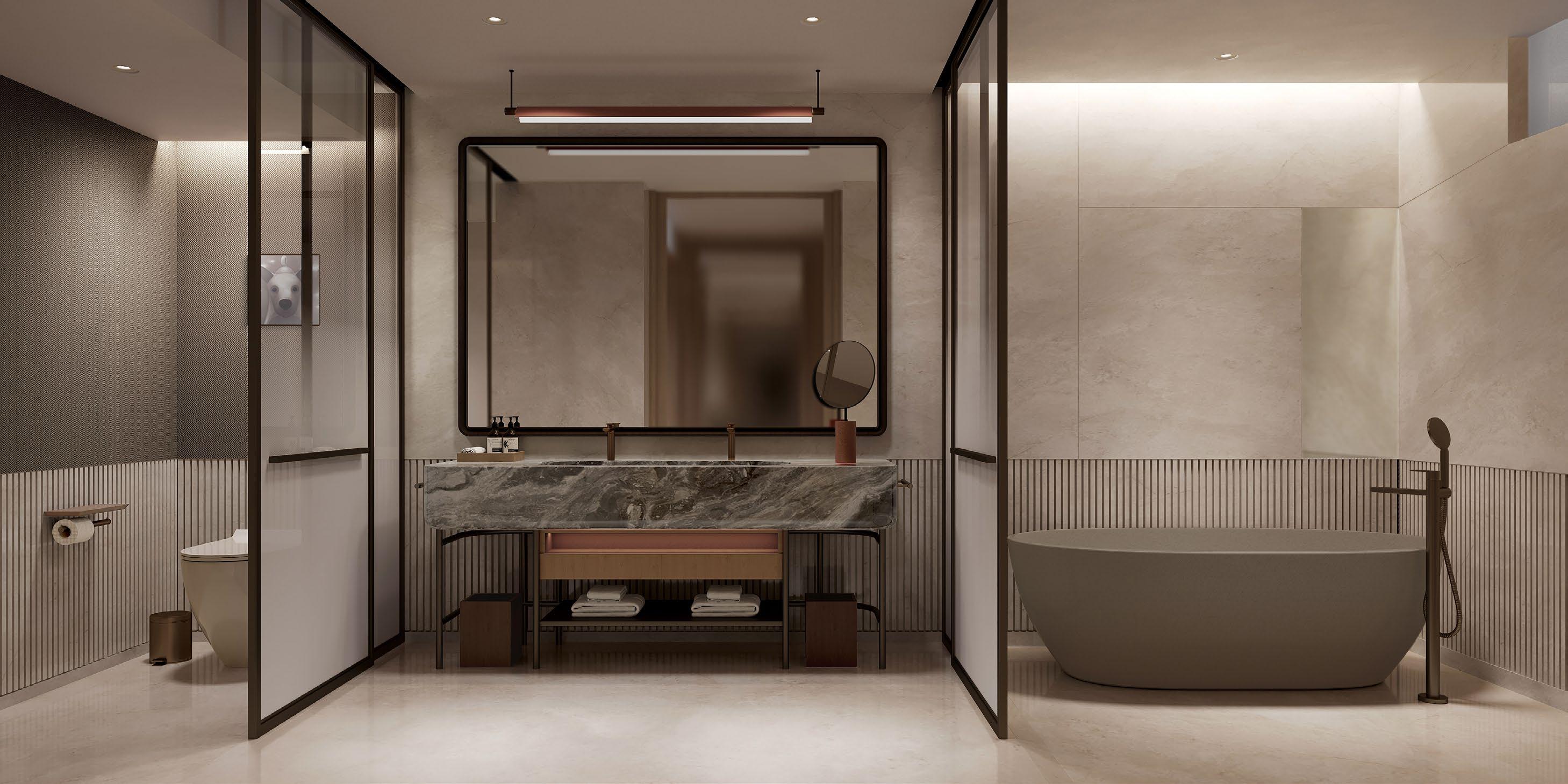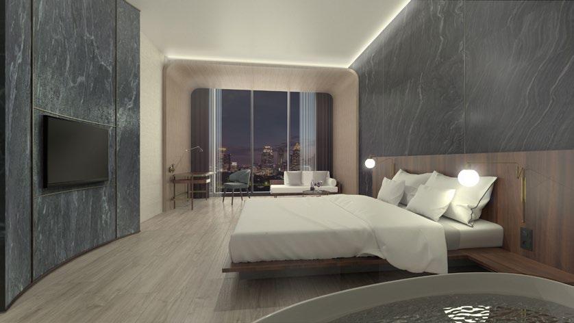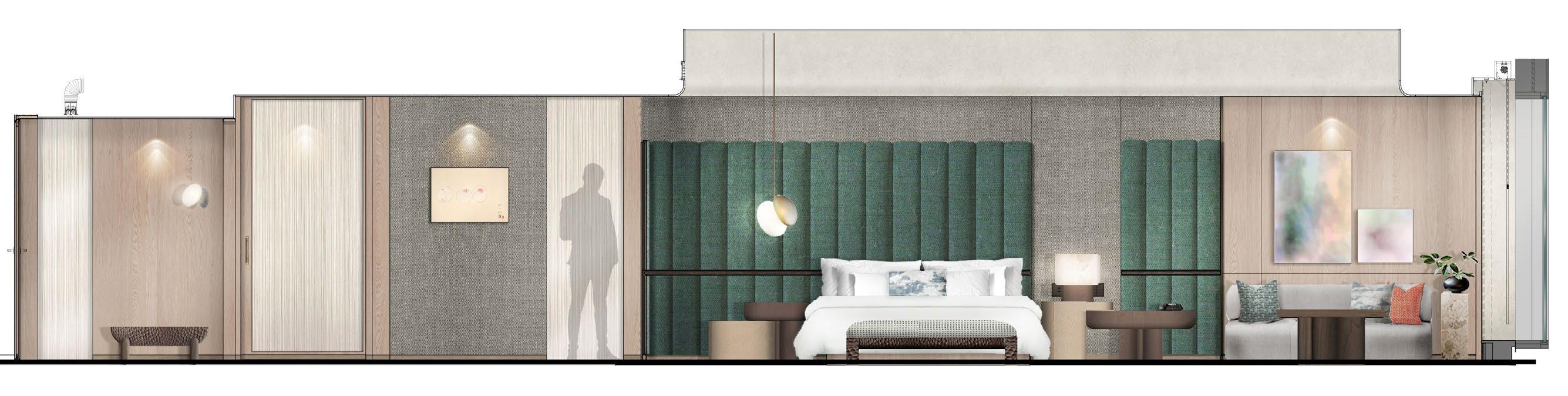 In the hotel, guest rooms are the centerpiece of the guest experience. Each room is meticulously designed for intimacy and personalization, offering bespoke service tailored to individual preferences. Flexibility is key, with adaptable furniture allowing guests to configure their space as needed. This invites guests to create their own sanctuary, ensuring a truly personalized and memorable stay.
