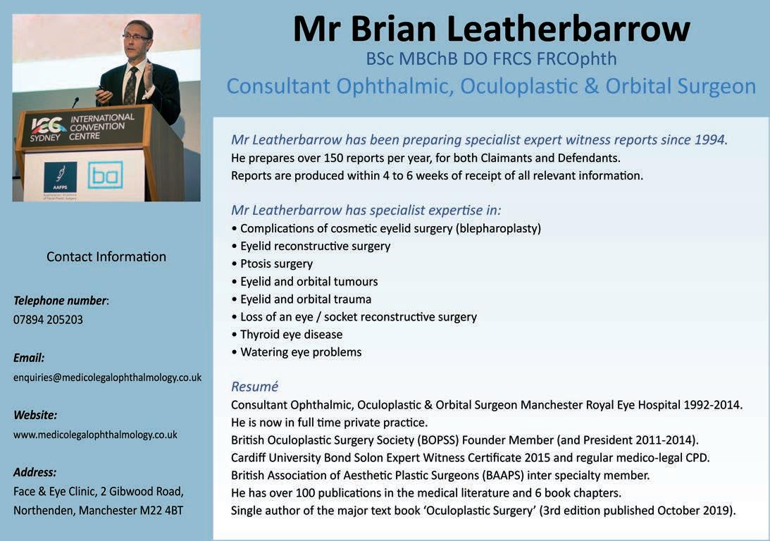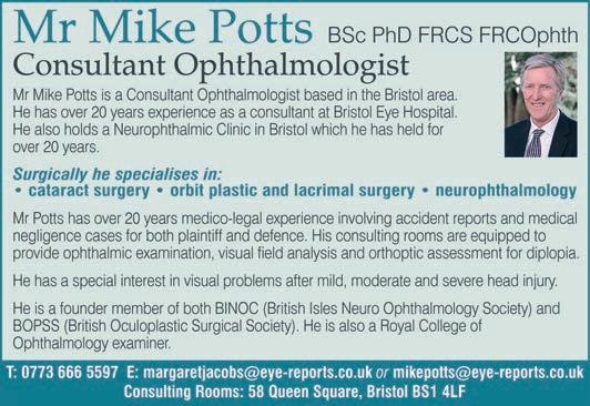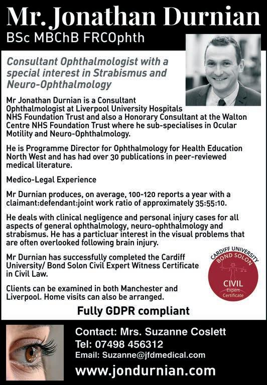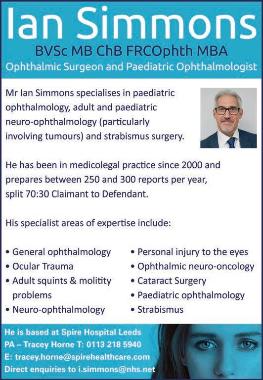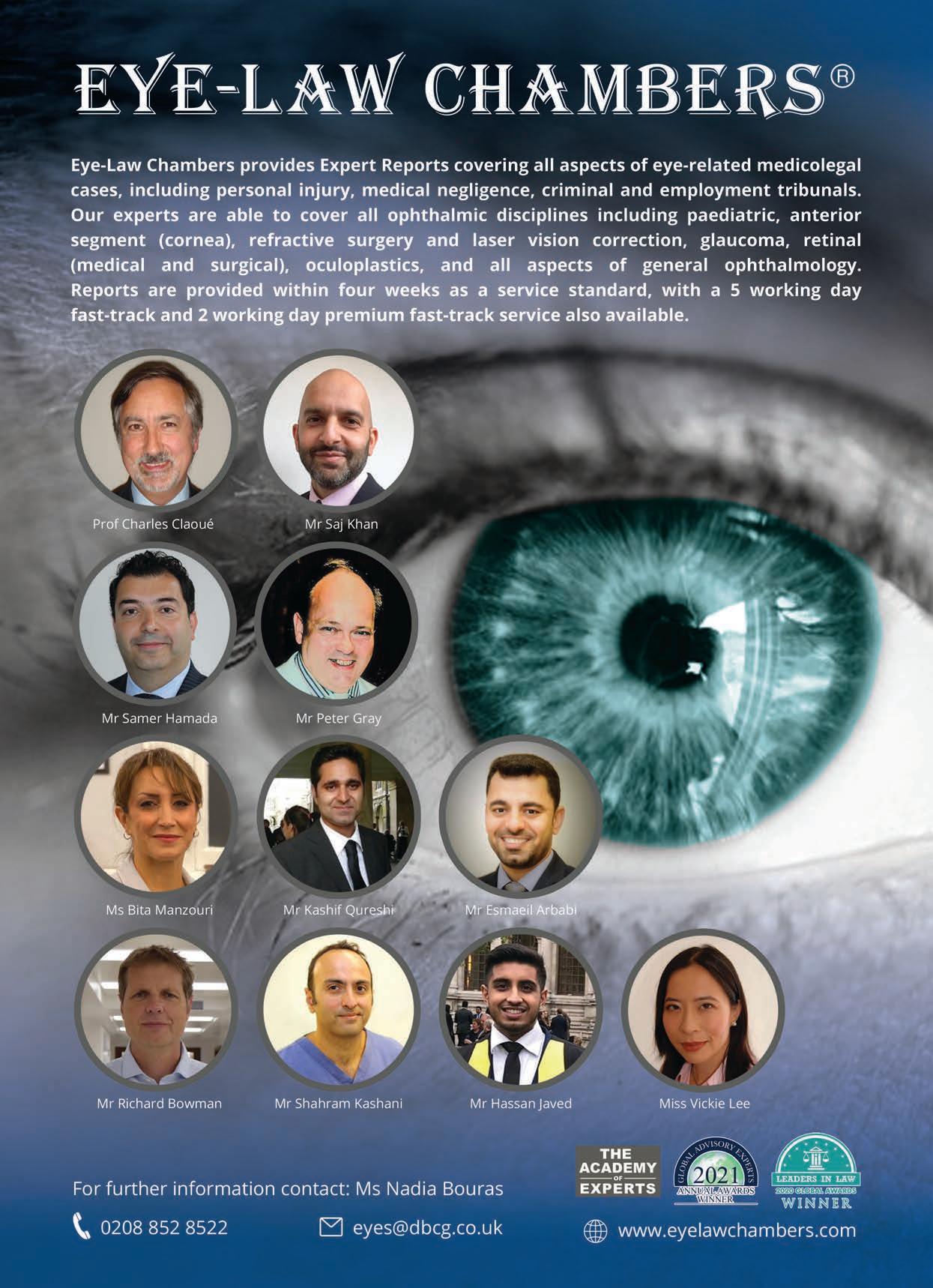 Working within a group of expert witnesses we can serve patients and their legal representatives better by ensuring that we provide expertise within the scope of our practice. It is notable that all the experts in Eye-Law Chambers are in active, current clinical practice and are not doing medicolegal work in retirement.
