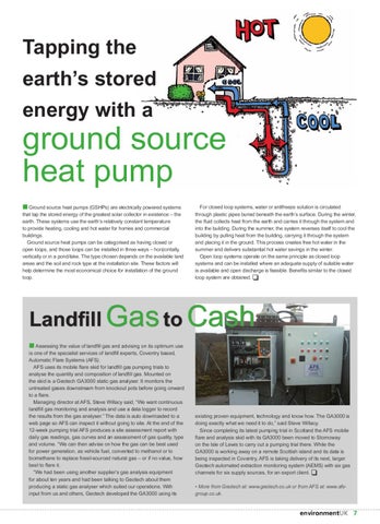 existing proven equipment, technology and know how. The GA3000 is doing exactly what we need it to do,” said Steve Willacy. Since completing its latest pumping trial in Scotland the AFS mobile flare and analysis skid with its GA3000 been moved to Stornoway on the Isle of Lewis to carry out a pumping trial there. While the GA3000 is working away on a remote Scottish island and its data is being inspected in Coventry, AFS is taking delivery of its next, larger Geotech automated extraction monitoring system (AEMS) with six gas channels for six supply sources, for an export client. q • More from Geotech at: www.geotech.co.uk or from AFS at: www.afsgroup.co.uk.