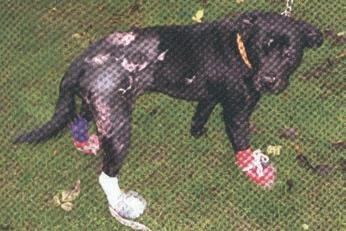 a badly infected front leg, a paw so badly crushed the bones had fused together and a stab wound.