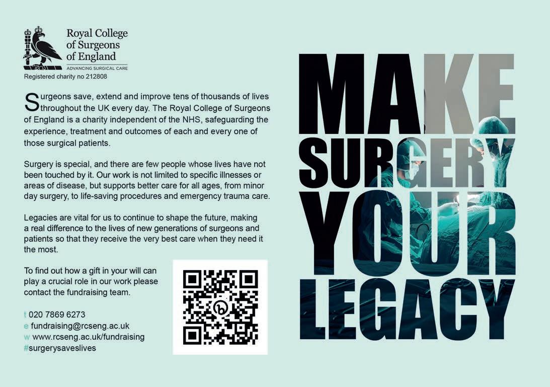 RCS England’s fundraising team said: “For many supporters of RCS England, their appreciation of our work takes the shape of a legacy or in-memory gift, and every year, an extraordinary range of our work is made possible by this generosity. With a tried-and-trusted record of working with pledgers to understand and guarantee their wishes, and showing our appreciation, the college is a safe pair of hands for any size of gift and every personal interest.”