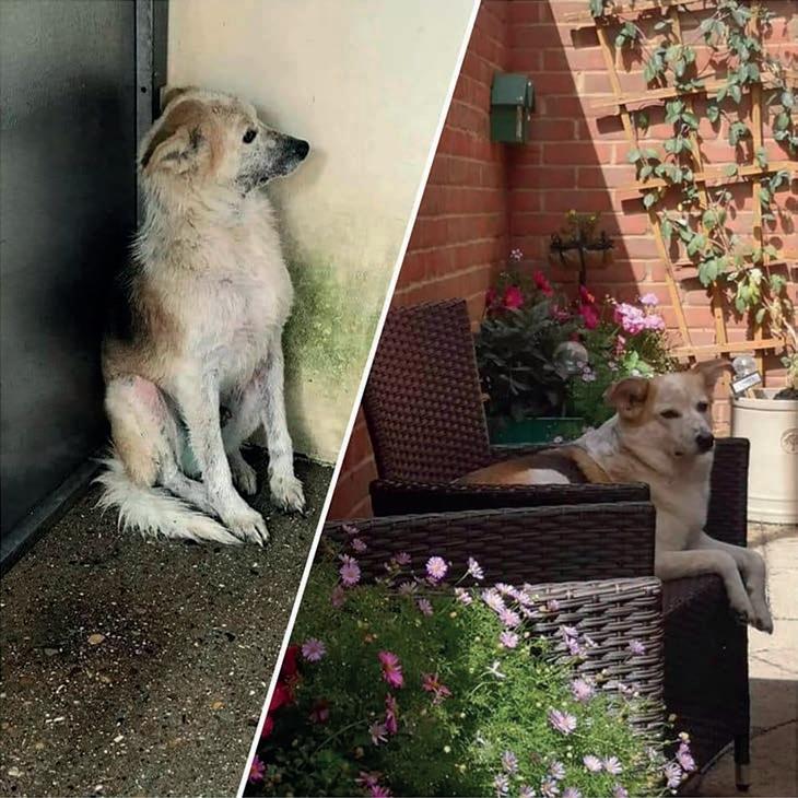 The photograph on the right of border collie Nipper was taken on the same day that he’d been taken to a vet’s to be put to sleep. Purchased as a ‘surprise’ gift, he was unwanted. This beautiful puppy was just eight weeks old and is just one of almost 10,000 animals rescued by Friends of the Animals.