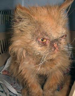 a badly infected front leg, a paw so badly crushed the bones had fused together and a stab wound.