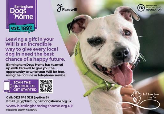 • Please be a part of our future by remembering us in your will today Visit birminghamdogshome.org.uk/support-us/leave-a-gift-in-your-will/