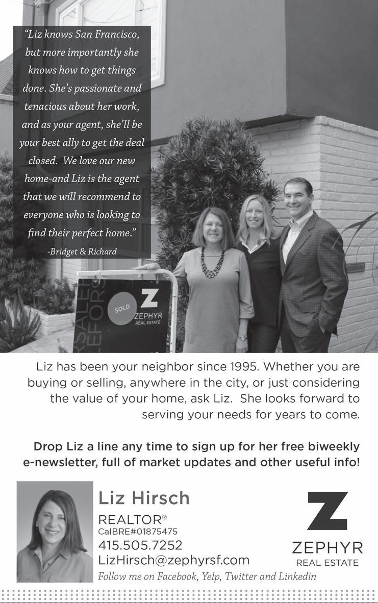Starr King Open Space meets for monthly Stewardship Day the second Saturday of each month from 9:30 a.m. to 12:30 p.m. at Starr King Open Space, corner of Carolina St. and 23rd St. Come out and meet your neighbors, be a community steward, enjoy the natural grassland habitat, see spectacular views, and celebrate our beautiful neighborhood open space. Everyone is welcome. Find out more at starrkingopenspace.org or facebook.com/ StarrKingOpenSpace.