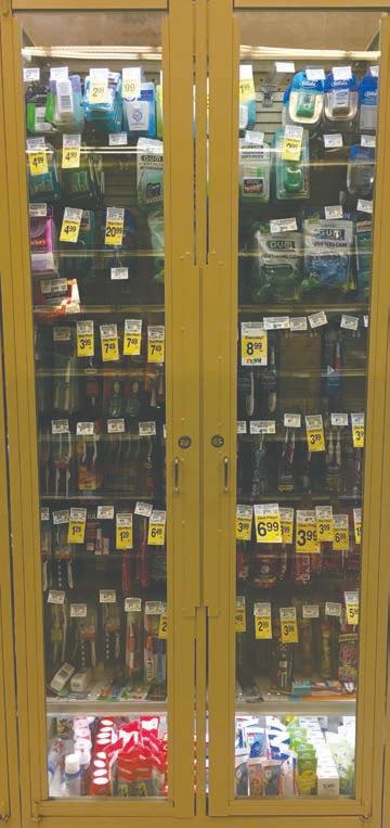 Though the store was busy with shoppers, the aisles were clean, wellstocked, easy to navigate and contained fresh-looking goods. However, few store staff was visible outside the registers. About a year ago, the Potrero Center Safeway began locking up select items behind reinforced glass cabinets, including infant formula, soap, moisturizers, cleansers, dental