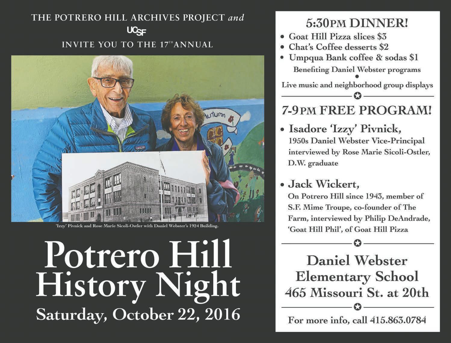NOTICE: REVERED VICE PRINCIPAL, Izadore Pivnick, will be interviewed on October 22, 2016 during the Potrero Hill History Night. Daniel Webster Elementary School, 465 Missouri St. at 20th.
