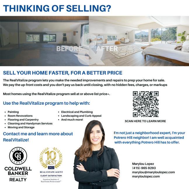 For a $200 annual fee your organization can be listed in Getting Involved. Contact production@potreroview.net Green Benefit District | GreenBenefit.org Get involved! Neighborhood organizations are staring to plan clean-up days and other volunteer opportunities again. Sign up for the GBD monthly Green Sheet news blast at GreenBenefit.org to receive notice of upcoming GBD volunteer events and other neighborhood activities. Potrero View | “2 x 2” Neighborhood Ad Draft 1 2022-02-16 CABINETS • CUSTOM BUILT • Your Local Lender. Here To Help You Navigate Homeownership Julie Shumate NMLS#310202 | Loan Consultant 700 Airport Boulevard, Suite 280 Burlingame, California 94010 | Office: (650) 993-7581 | loanDepot.com, LLC NMLS ID 174457. Licensed by the Department of Business Oversight under the California Residential Mortgage Lending Act CRMLA 4131040. (082020 373960) (925) 413-6963 cell www.loanDepot.com/jshumate MAKE YOUR TAX-DEDUCTIBLE DONATION to Potrero View through SF Community Power; consider including your favorite newspaper in your trust. Correspondence to: 296 Liberty Street San Francisco 94114