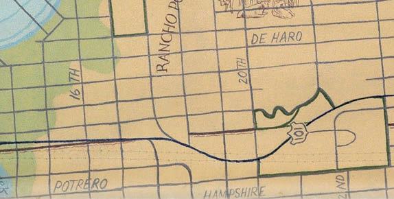 Hill boys, we got to stick together.” The second victim of Harry’s nemesis Scorpio is discovered on a hillside lot at Texas and Sierra streets, where the Sierra Heights condominium complex is now. A motorcycle cop assassinates four municipal officials at the 18th Street offramp from Highway 280 in Magnum Force (1973), the second in the Dirty Harry series. And an extended remote-controlled car chase in The Dead Pool (1988), the fifth and final film in the sequence, features Harry and his partner Inspector Al Quan (Evan C. Kim) dangerously careening up and down our steep hills.