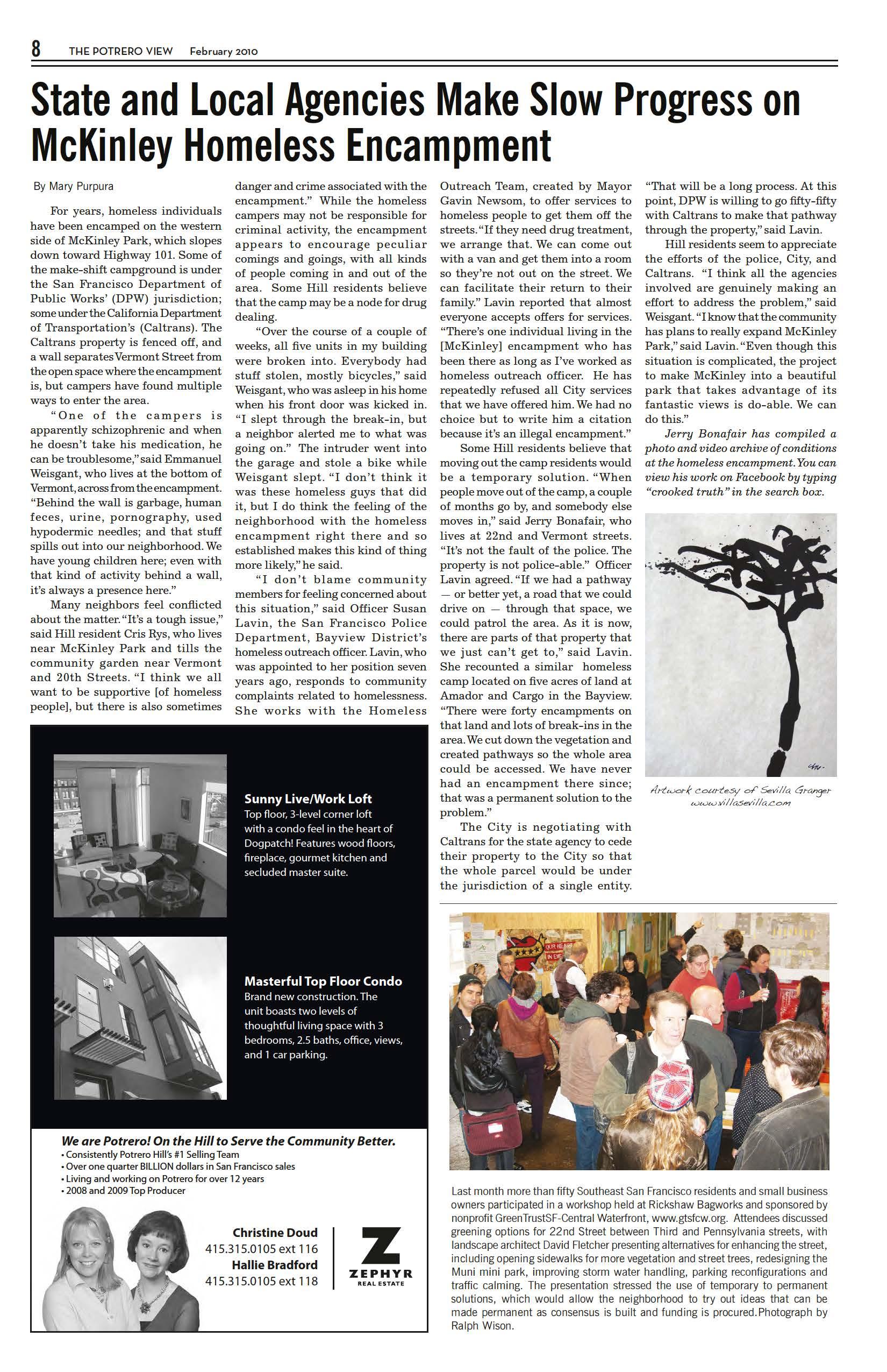 Interested artists should send their portfolio and cover letter to Lisa Tehrani, graphics@ potreroview.net.