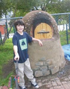 The cob oven came about through a collaboration between Double Rock Community Garden gardeners and members of the Ecology Center of San Francisco, a nonpro t formed in 2006 to promote sustainable communities. On a recent Saturday in January, the two groups came together again to offer a cob-building workshop, this time resulting in a curved earthen bench created under a mature shade tree.