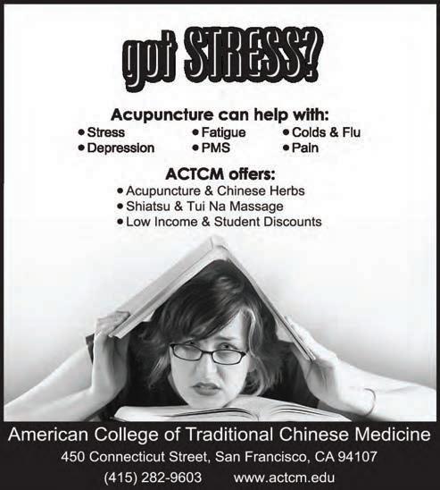 Health:Women’sWellnessWorkshops Learnhownaturopathicmedicinecan help you live well. $25. First Saturdayofeverymonth;2:30to3:30 p.m.Upcomingtopics:YourVitalVAnintimatediscussionofvulvovaginal health;KillerCramps-Managing periodpainandendometriosis; EnhancingYourChances-Natural approachesforimprovingfertility.Sign up at www.meetup.com/SFnatmed.