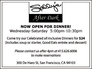 SENIORS (60+) DON’T EAT ALONE Join us for daily lunch and add to your social life. Mon-Fri, hot nutritious meals--your first time with us you get a free lunch! Bingo, cards, birthday celebrations, special events, and other activities. For more information, call Dolores Maghari at 415.826.8080. PH Neighborhood House, 953 De Haro St.