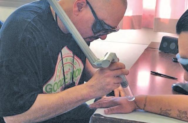 The SFGH Teen Trauma Recovery Program’s Wrap-Around Project and the Community Response Network (CRN) provide support for the SFGH tattoo removal program. The Wrap-Around Project aims to break the cycle of violence in vulnerable communities by addressing root causes and risk factors with culturally competent case management. CRN combines efforts across nonprofit agencies to establish a network of Safe Havens for at-risk youth. WrapAround case managers, many of whom have had prior gang affiliations and/or done active community work, as well as CRN workers, do streetlevel outreach, recommending Dr. Marie-Rose’s program to youth they identify as potentially on the brink of making a lifestyle change. They’re also on-hand in hospital waiting areas to de-escalate any conflicts that break out between patients.