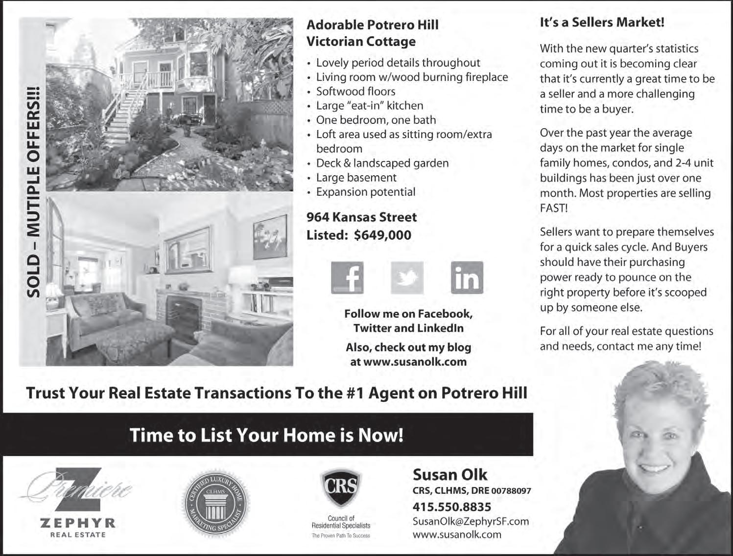 HOW TO PLACE A CLASSIFIED AD: UPDATE, POST, & PAY ONLINE Visit www.potreroview.net & follow the instructions for placing your ad. COST $25 for up to 200 characters including spaces. Recieve an additional 20% discount provided for ads paid for six months in advance! MAIL OR CALL IN YOUR AD View Wants Ads 2325 Third Street, Suite 344 San Francisco, CA 94107 415.626.8723 / office@potreroview.net * Payments and/or text changes must be received by the 18th of each month for ad to appear in the following month's issue.