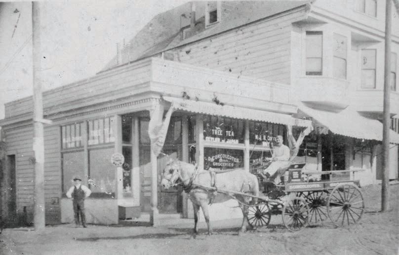 D. Corcoleotes (pronounced cork-lee otis) Market stood on the southeast corner of Kansas and 18th streets for many years. Demetrios Corcoleotes’ family came to the United States during a period of massive Greek immigration, from 1900 to 1914, which was accelerated by the promise of the construction jobs that became available following the 1906 earthquake and fire. Third Street, south of Market, was the center of San Francisco’s Greek community. In the photograph, D. Corcoleotes Market is shown in the early-1900s, before a second story and stucco were added. At that time illumination was “transitional” ; the building had both gas and electric fixtures. The market sold meat, vegetables, bread, beer, cigars and other staples. Almost every Potrero Hill block had its own store, owned by Russians, Slovenians, Italians and Greeks. Many markets took telephone orders and delivered. Recently the building where D. Corcoleotes Market used to vend its wares was home to a pilates studio,and before that, to an antiques store. Peter Linenthal, Potrero Hill Archives Project.