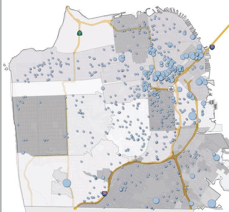 The second big move, and the project’s essence, would be to replace I-280 with a surface boulevard. According to McCann, that would open up access to Mission Creek and the Bay, creating opportunities for public spaces, such as plazas at Mission Creek and Channel Street. The City could also develop its own version of New York City’s High Line— a public park that was once an elevated railroad — if it leaves a fragment of I-280 standing, offering visitors a view of the surrounding area. The goal, in part, is to prompt travelers to say, “This is where I arrived in San Francisco,” McCann said.