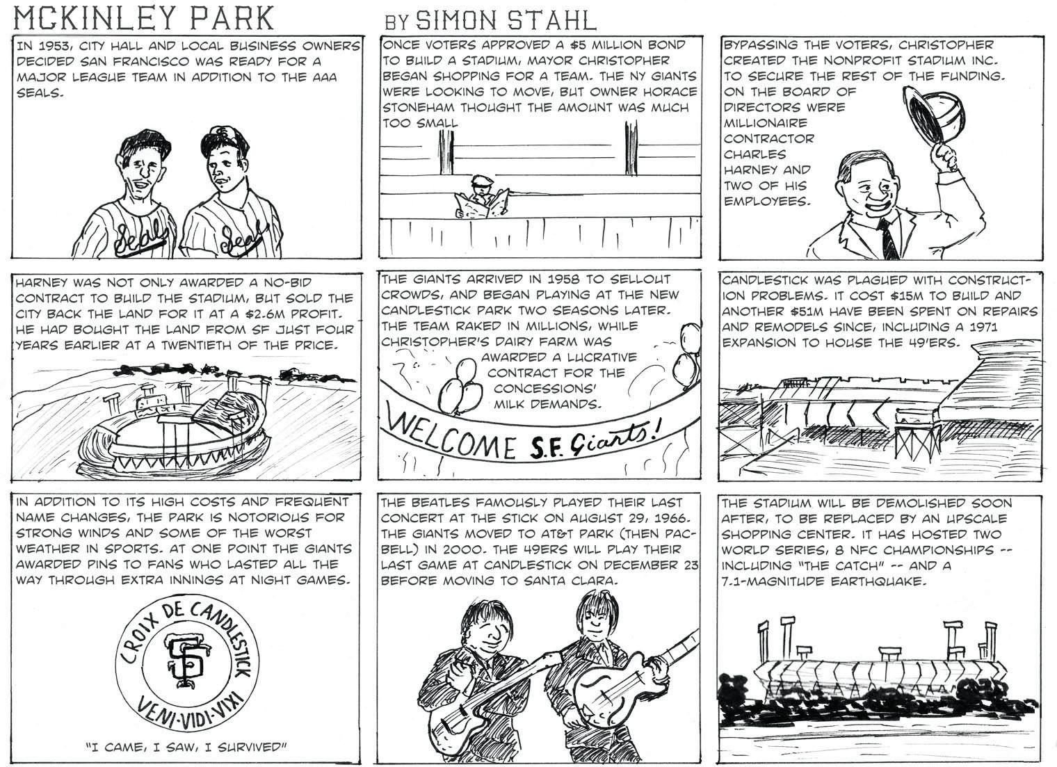 It’s the year 2000. A San Francisco Giants fan cycles from the new Pac Bell Stadium, heading south across the Third Street bridge toward Potrero Hill. She attempts to hug the waterfront by taking a sharp left, but is confronted by asphalt pavers and construction tape, so instead snakes her way through rows of parked cars toward Pier 48. Hanging a right, she coasts alongside the Bay; a yawning expanse of landfill and industrial buildings stretches in front of her, with no stop signs or traffic lights to slacken her pace. Her view of the Hill is unobstructed, save for whirlwinds of dust kicked up by passing trucks. The only person she spots is a lone fisherman, who hoists his equipment into the back of his hatchback against a backdrop of barges.